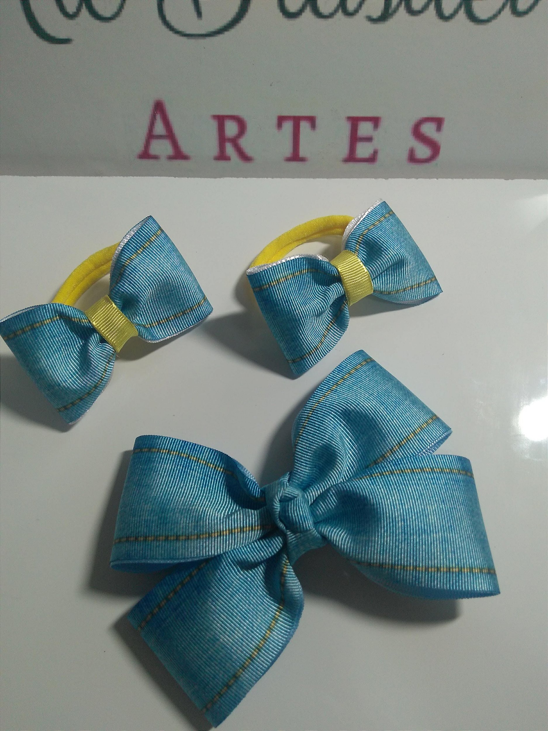 Kit Laço catavento Jeans no bico de pato e 1 par de laço gravatinha na xuxinha Jeans .